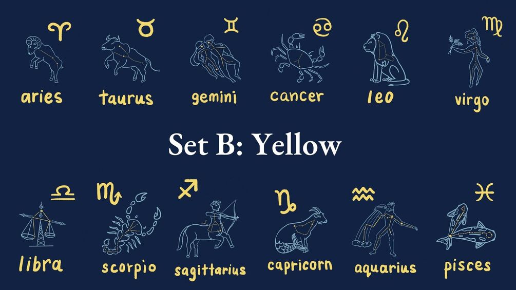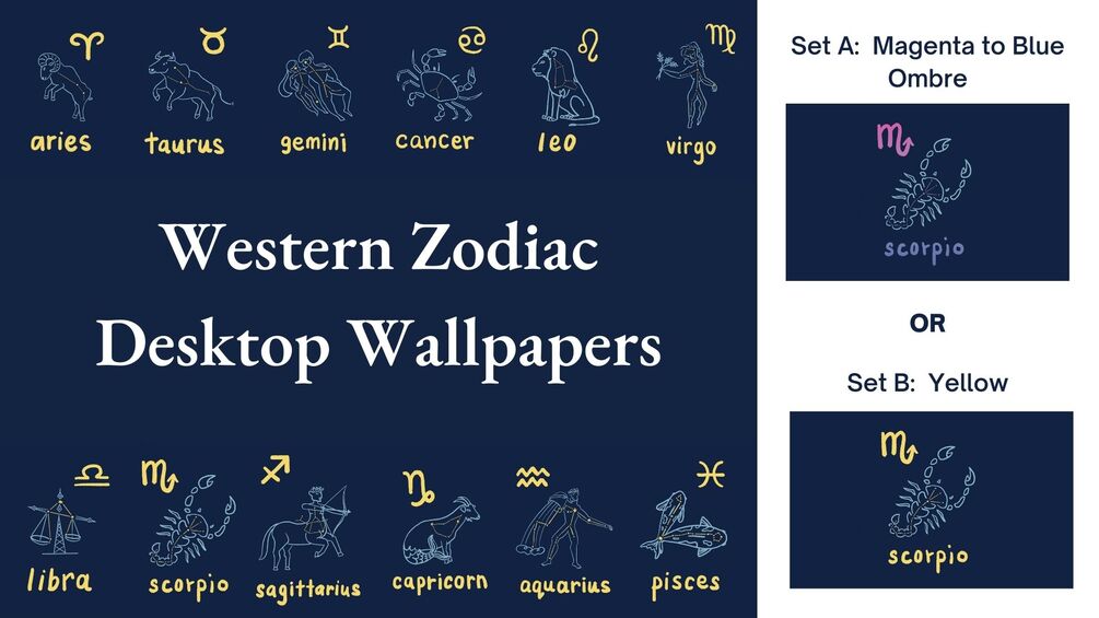 • Set B: 12 western zodiac desktop wallpapers with a yellow background