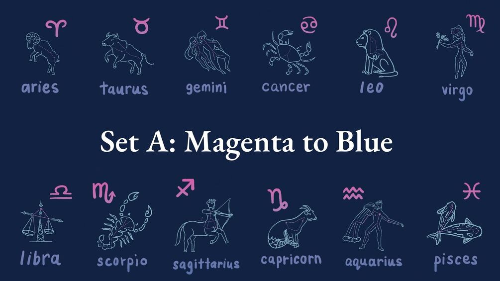 • Set A: 12 western zodiac desktop wallpapers with a magenta to blue ombre background